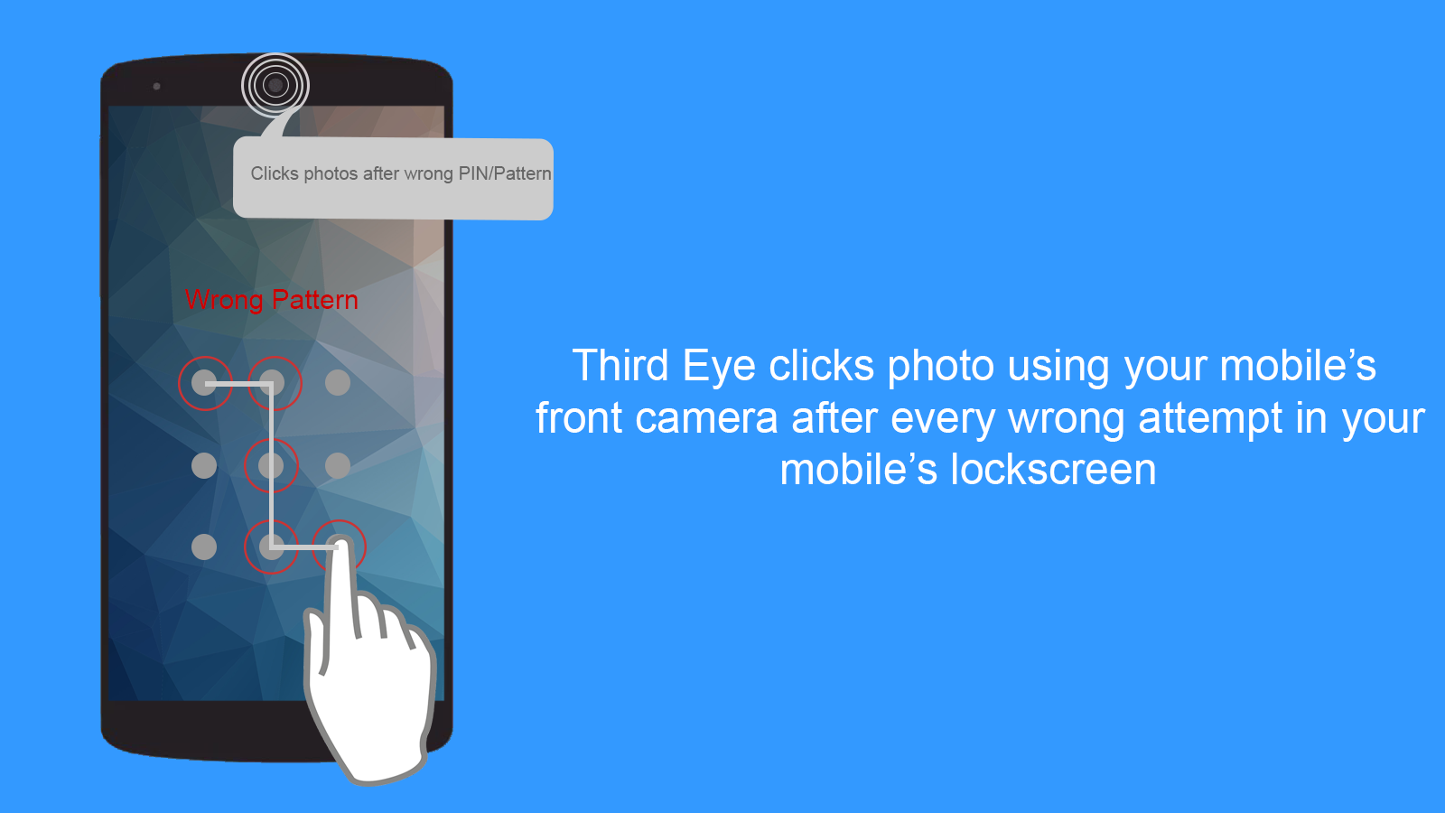 Use this amazing app and catch all the mobile snoopers with ease. Third Eye app will make easy your task of catching your friends and family while they try to access your smartphone. This appliaction will take a photo while someone tries to access your mobile with wrong PIN, Pattern or Password. You can catch them using this app. It provides lot other cool features.